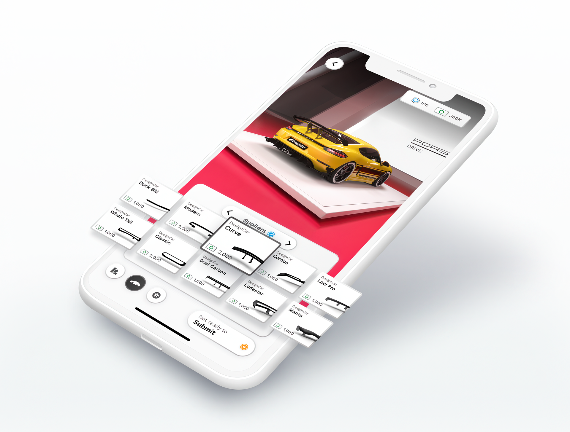 My involvement in the Design Car app came through collaboration with the excellent and ambitious team at Territory Studio. It started as a two-day pitch for a well-known German sports car manufacturer, with the brief to create a configuration app that rewarded user creativity, allowing people to design, share, and gain recognition and rewards for their work.