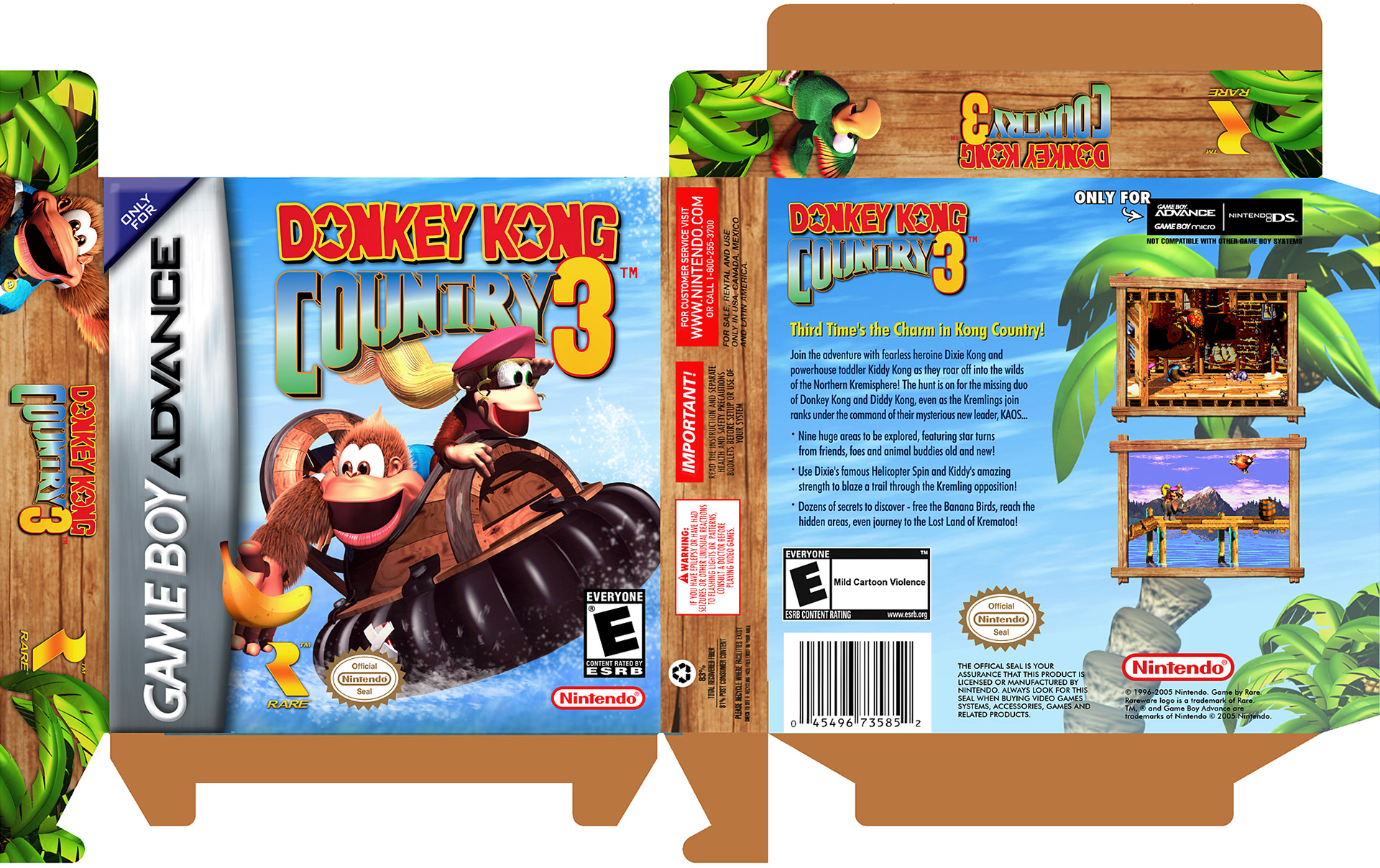 This revamped N64 classic was lovingly ported to the Game Boy Advance. I created the box art, cartridge stickers, manual and various supporting materials.