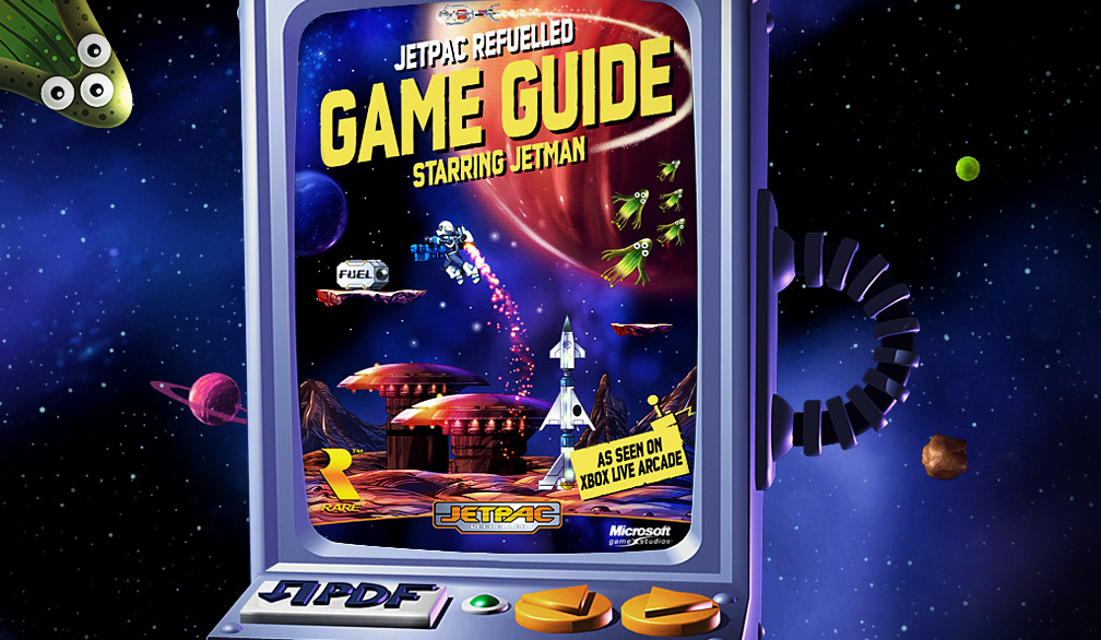 Jetpac for those of you who aren't old enough to remember is a classic video game created for the ZX Spectrum (the first affordable home computer). Created by the software pioneers Ultimate who would later become Rare. Jetpac Refuelled is a modern remake which was created for the newly established Xbox Arcade service. Being a download-only title, I was briefed to create an online manual. I went a bit above beyond the brief and created a little digital microsite that reflected the games tone and encourgours to learn more about the game, way more engagement than a simple pdf download.