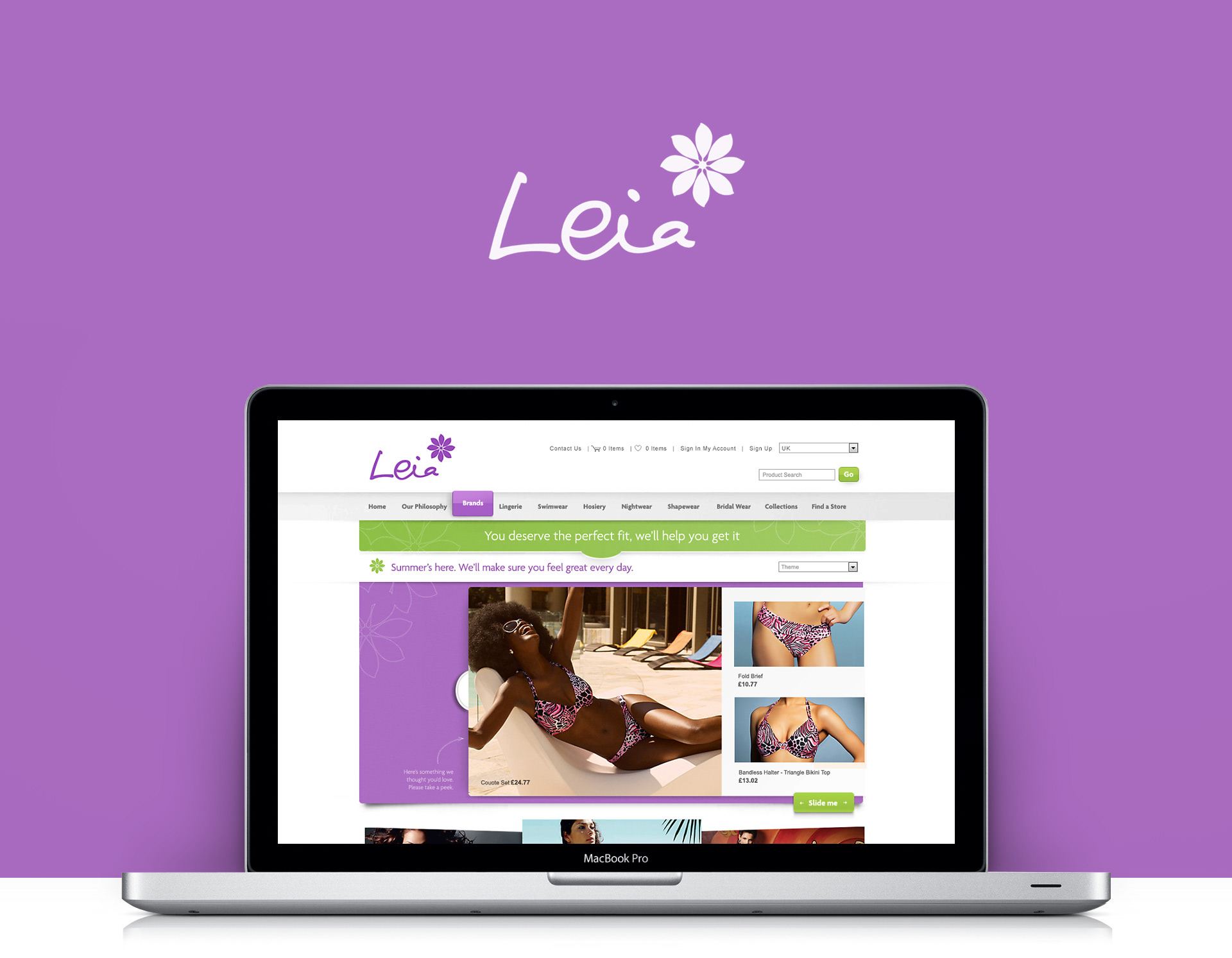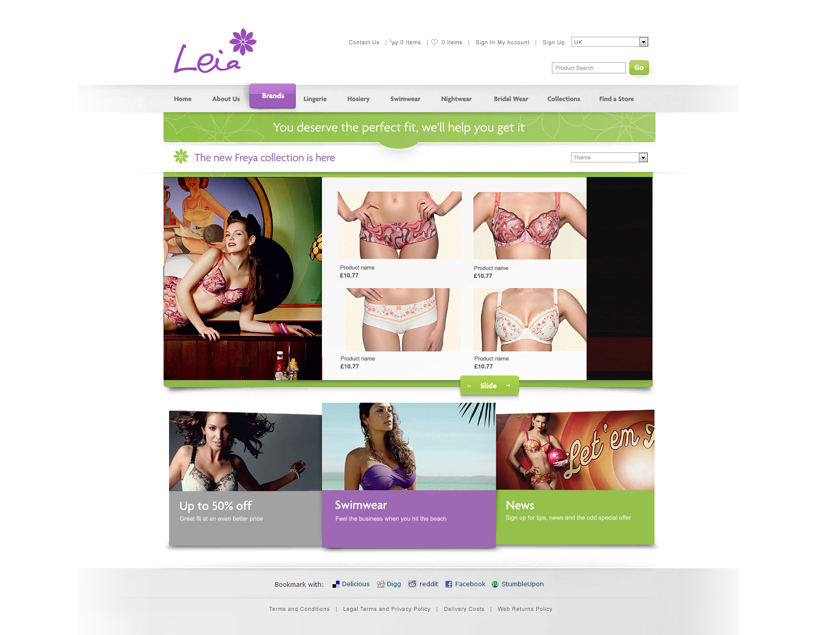 Eveden (now known at Wacoal) are a high quality, fashion conscious lingerie and swimwear manufacturer based in the UK. They typically sell their products via e-commerce partners and traditional high street stores. However, they also sell directly to consumers via their own e-commerce site - branded Leia. I was briefed to give their site a full redesign. I started by bench-marking the competition for best practices, borrowing heavily from Asos which was the main innovator at the time. I also made use of Eveden’s strong campaign and product photography with large shop product imagery and an interactive scrolling product draw on the homepage.