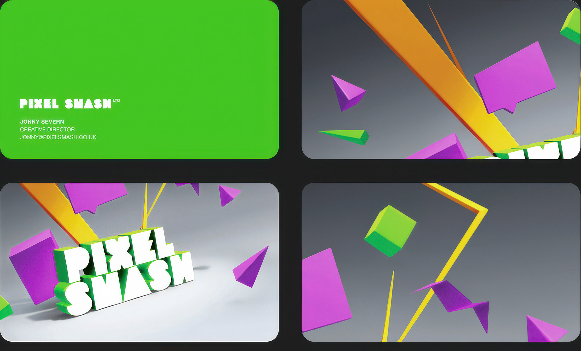 Pixel Smash is the brand I created for my own production company, founded in 2010. I wanted something that captured my creative taste, distinctive, playful and visually striking. It also needed to be memorable. At the time I was fascinated by bold, colourful 3D shapes and typography, likely influenced by the new wave of TV channel idents being produced then, which carried a similar sense of energy and polish.