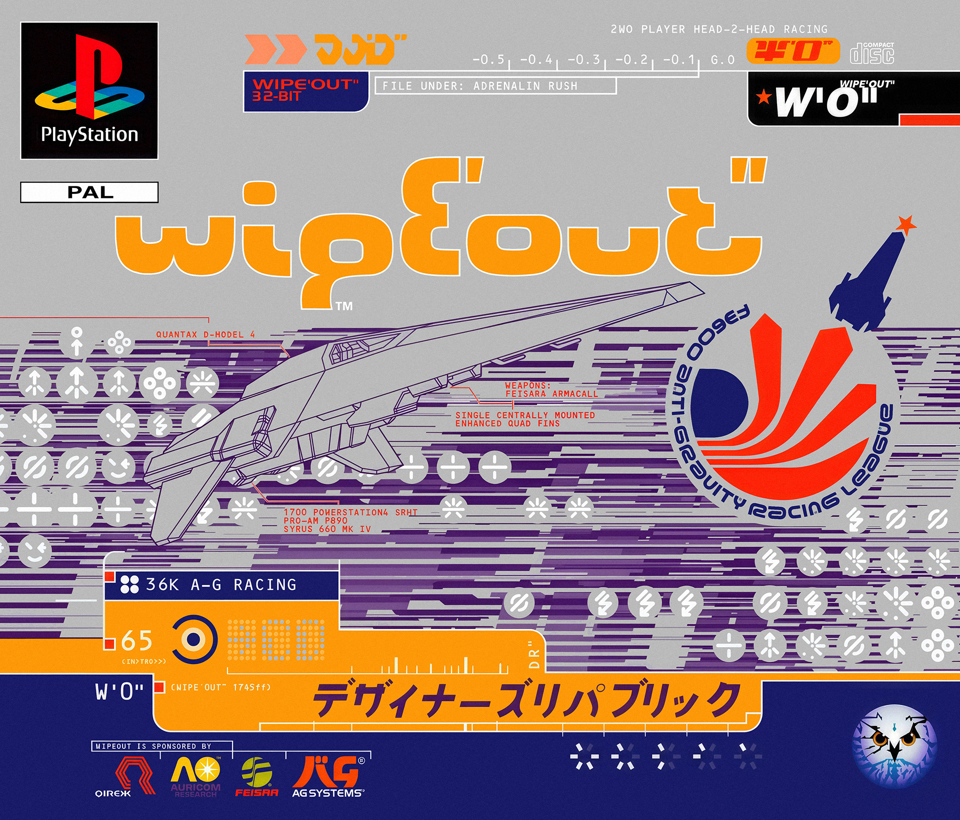 Wipeout was a futuristic racer with a pounding dance soundtrack. The Designers Republic designed the racing teams, the in-game UI and HUD, and the box art. I remember seeing the box for the first time and not even knowing what I was looking at, only that it was new and cool. I bought the game immediately.