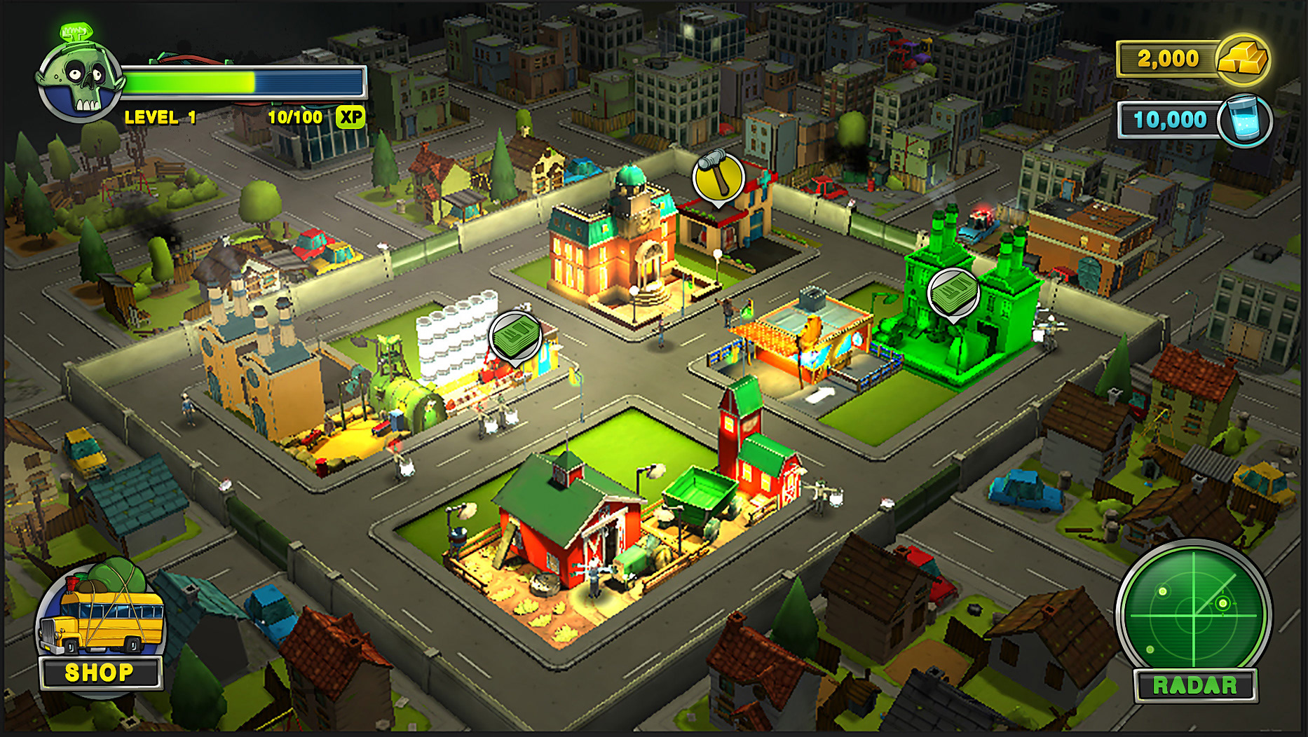 By the time I joined the project the team had already established a strong visual direction reminiscent of The Simpsons, bright, characterful and slightly irreverent. My role was to design in game UI elements and shape the overall presentation, ensuring the interface matched the playful world the artists had created while still supporting the depth expected of a strategy title.
